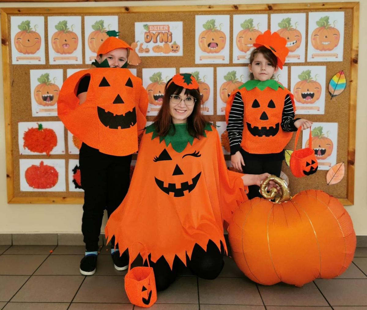Uczniowie przyszli ubrani na pomarańczowo, przynosząc ze sobą prawdziwe dynie – duże, małe, ozdobne i zupełnie wyjątkowe! W klasach powstawały też papierowe dynie, które ozdobiły sale i korytarze szkoły. Nie zabrakło również dyniowych piosenek, przy których dzieci świetnie się bawiły.