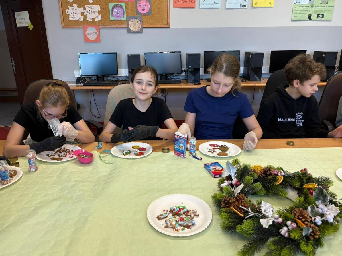 Dzisiaj uczniowie ozdabiali świąteczne pierniczki. Było kolorowo i smacznie. Słodkości będzie można kupić na świątecznym kiermaszu szkolnym. Polecamy!